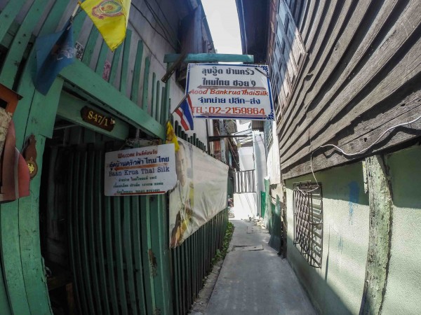 วิธีเดินทาง : หากมาจากท่าเรือชุมชนบ้านครัวเหนือเส้นทางเดินซอกแซกมาก คงต้องค่อยๆ ถามทางเอาครับ ส่วนหากมาท่าเรือสะพานหัวช้าง หันหน้าออกไปยังคลองแสนแสบ แล้วเดินไปทางซ้ายมือ 230 เมตร จะผ่านพิพิธภัณฑ์จิมม์ ทอมป์ สัน ที่ตั้งอยู่ในซอยทางด้านซ้ายมือ ให้เดินเลยตรงดิ่งไปอีก จนกระทั่งเจอสะพานข้ามคลองแสนแสบ (หรือ คลองมหานาค) ข้ามคลองไปแล้วเลี้ยวซ้ายเดินตรงไปอีก 100 เมตร จะเจอป้ายอยู่ด้านบนชี้ให้ เลี้ยวขวาเข้าไป ‘ลุงอู๊ดบ้านครัวไหมไทย’ อยู่ในซอยทางขวามือครับ