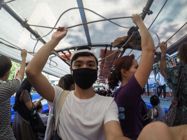 ความพีคที่สุดคือ น้องผู้หญิงนักศึกษากระโดดข้ามไปด้วยความมุ่งมั่น ในขณะที่เรือถีบตัวห่างออกจากท่า แล้วน้องก็ไต่ ไต่ ไต่ ด้วยสกิลไม่แพ้สาวยิมนาสติค และลงสู่เรือคลองแสนแสบอย่างสวยงาม เท้าน้องแตะเรือปุ๊ป เล่นเอาผมเกือบปรบมือ ยืนค้าง ลุ้นเอาใจหายใจคว่ำ