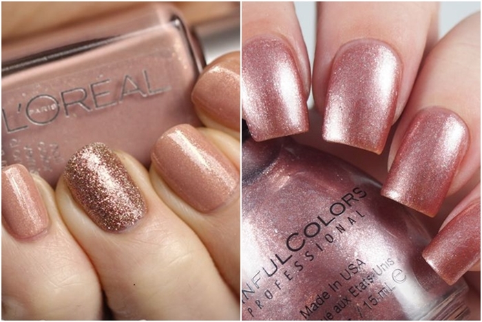 ใครชอบทำเล็บหรือเปลี่ยนสีเล็บบ่อยๆ แล้วอยากได้เล็บสวยสไตล์เรียบหรูดูมีตังค์ แนะนำให้เก็บสีโรสโกลด์ไว้เป็นหนึ่งในสีเล็บกันตายเลยค่ะ เพราะเป็นโทนสีเรียบหรู ที่ทาแล้วดูแพงขึ้นมาทันที วันไหนอยากได้ลุคเรียบง่ายก็แค่ทายาทาเล็บสีโรสโกลด์เพียวๆ ไปเลยจบ วันไหนจะออกงานขอมีความวิ้งวับขึ้นมาหน่อย ก็เติมกากเพชรเข้าไปอีกนิด แต่ถ้าเบื่อสีเรียบๆ ก็เอาไปมิกซ์กับสีอื่น หรือเพ้นท์ลายสวยๆ ก็ได้นะจ๊ะ