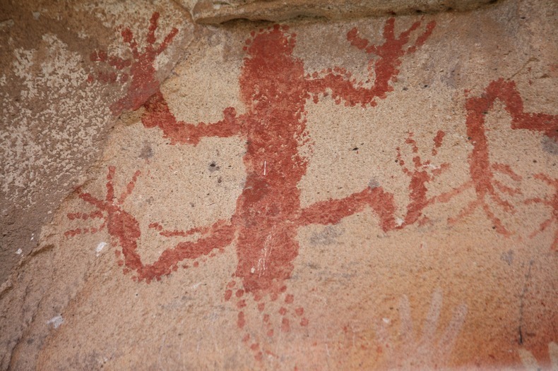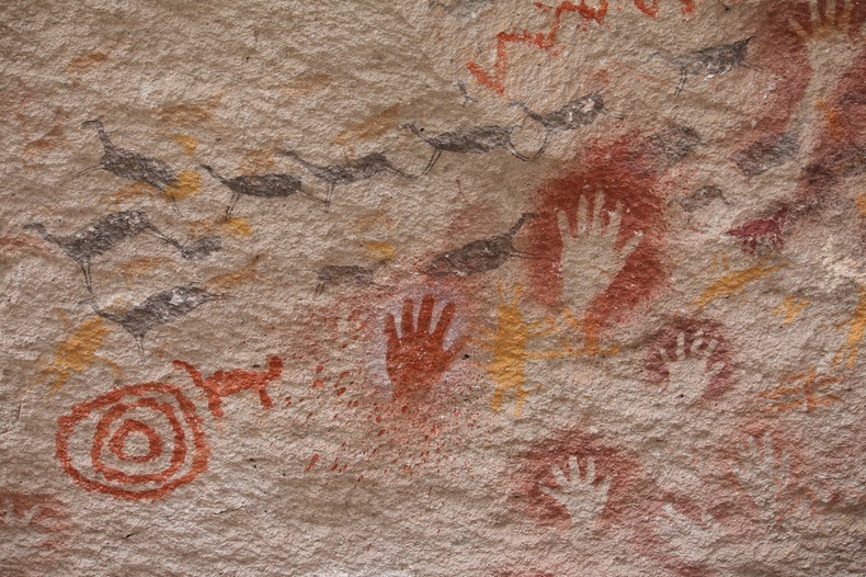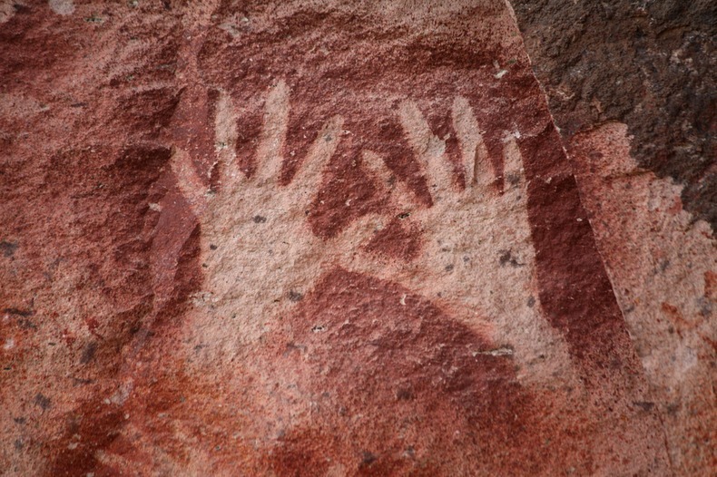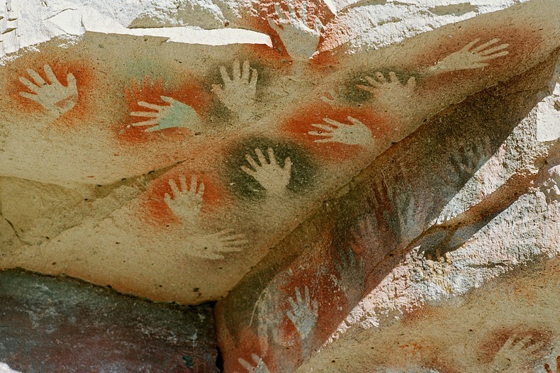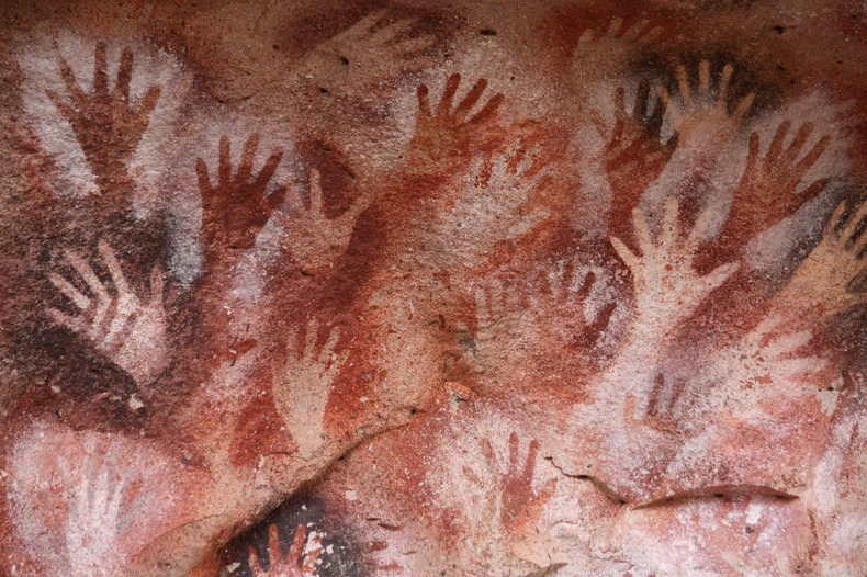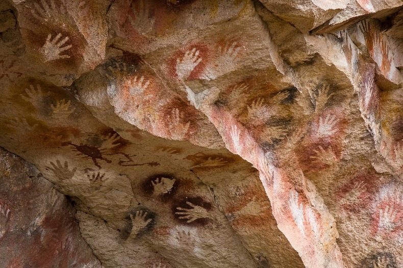 ภาพศิลปะของมนุษย์ยุคหินมีกระจายทั่วไปตามถิ่นที่อยู่ต่างๆ ทั่วโลก แต่ว่ามีบางแห่งก็มีภาพแปลกกว่าที่อื่นอย่างเช่น ถ้ำ Cueva de las Manos หรือในภาษาอังกฤษคือ ถ้ำฝ่ามือ อยู่ในเขตปาตาโกเนีย เมืองซานตาครูซ ประเทศอาร์เจนตินา ที่ได้รับการประกาศเป็นมรดกโลก ในปี ค.ศ. 1999