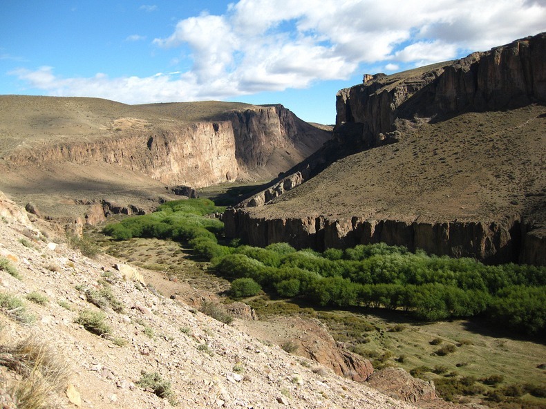 ภาพภายในถ้ำ Cueva de las Manos มีอายุระหว่าง 9,500 ? 13,000 ปี และภาพที่แปลกไปจากที่อื่น คือ ภาพพิมพ์ฝ่ามือ ซึ่งภาพฝ่ามือเหล่านี้ มีมากถึง 2,000 ภาพ เป็นรูปมือเรียงรายบนผนังถ้ำตลอดทางยาว 600 เมตร ภายในถ้ำมือที่เห็นจะเป็นมือซ้าย นั่นบ่งบอกว่า ผู้ที่ทำภาพนี้ใช้มือตัวเองเป็นแม่แบบ และใช้มือขวาที่เหลือพ่นสีทับลงไป สีที่นำมาใช้เป็นสีอันเกิดจากการผสมแร่ธาตุตามธรรมชาติ จำพวกเหล็กออกไซด์สีแดงและม่วง ดินสีขาว เป็นต้น ซึ่งแสดงให้เห็นว่าผู้ที่สร้างสรรค์ภาพมือเหล่านี้ มีความรู้เรื่องการใช้สี นอกจากนี้แล้ว ยังก็ยังมีภาพอื่นๆ อย่างเช่นภาพการล่าสัตว์ และภาพแสดงวิถีชีวิตต่างๆ ของผู้คนในยุคนั้น ก่อนที่ดินแดน ปาตาโกเนีย แห่งนี้ จะถูกค้นพบและยึดครองโดยชาวสเปน และเปลี่ยนพื้นที่แถวนี้เป็นทุ่งหญ้า เลี้ยงปศุสัตว์ ทำให้วิถีชีวิตดั้งเดิมของคนพื้นเมืองสุดสิ้นลงไปด้วย?