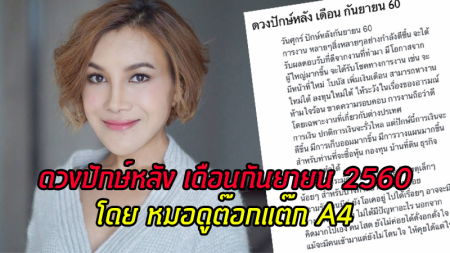 มาแล้วจ้า! สำหรับดวงรายปักษ์ประจำวันที่ 16 – 30 ก.ย. 2560 โดย หมอดู “ต๊อกแต๊ก A4” หมอดูเซเลปชื่อดังในโลกออนไลน์ ที่ได้เผย…