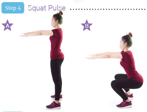 โดยให้ก้นอยู่ในระนาบเดียวกันกับเข่าและแผ่นหลังต้องให้ตรงอยู่เสมอ ทำซ้ำ