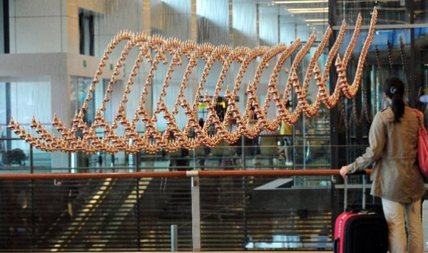 ทุกสายตาของ ผู้โดยสารและผู้สัญจรไป-มาที่ สนามบิน Changi อาคาร 1 ผู้โดยสารขาออก ประเทศสิงคโปร์ ถูกสะกดด้วยมนต์แห่งงานศิลปะสุดพริ้วไหว ประติมากรรมหยาดฝน หรือ Kinetic Rain ความงดงามแห่งรูปทรง บรรจงเคลื่อนไหวร้อยเรียง ผสานเป็น ประติมากรรมหยาดฝน สร้างสีสันดึงดูดใจ ให้ Changi กลายเป็นสนามบินสุดหวือหวา