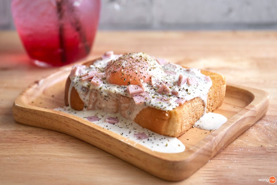 เพราะนี่คือขนมปังปิ้งราดด้วยซอสคาโบนาร่าโฮมเมดจากชีสสี่ชนิด