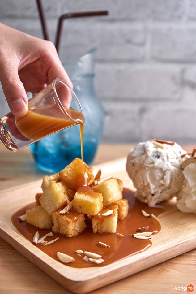 ที่ร้านยังมีเมนูใหม่น่าลอง ?Caramel Treasure? 159- โทสต์หั่นเป็นลูกเต๋า ราดด้วยซอสคาราเมลเสิร์ฟพร้อมไอศกรีมคุกกี้แอนด์ครีม