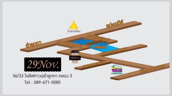 นอกจากกาแฟ ก็ยังมีเบเกอร์รี่ บราว์นี่ ชีสพาย ให้เลือกทานอีกด้วย เอาเป็นว่าใครอยากไปเจอสายป่าน หรือ เชอร์รี่ ละก็ สามารถแวะเวียนไปจิบกาแฟพูดคุยทักทายได้ที่ร้าน 29 Nov. Coffee ตั้งอยู่ ไอลีฟทาวน์ลำลูกกาคลอง3 ถนนเลียบคลอง3 เลขที่56/33 ลูกระนาดแรกซ้ายมือ เปิดให้บริการทุกวัน ตั้งแต่ 7 โมงเช้า ? 6 โมงเย็น