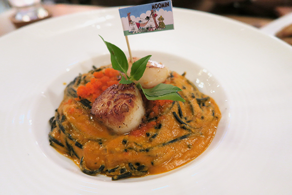 การการตกแต่งอาหารแต่ละจานมีการใส่กิมมิคของคาแรคเตอร์มูมินในรูปแบบต่างๆบน