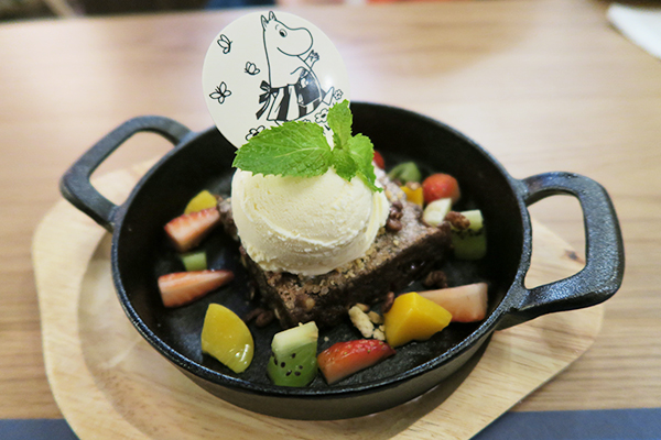 เมนูของหวานเริ่มที่มูมินมัดบราวนี่ 195 บาท โปะหน้าด้วยไอศครีมรสวนิลา