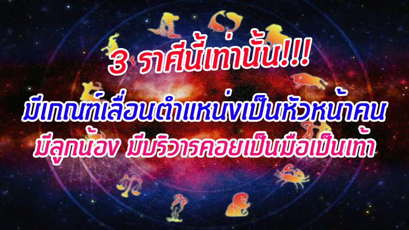 3 ราศี มีเกณฑ์เลื่อนขั้นเลื่อนตำแหน่ง เป็นหัวหน้า มีลูกน้อง มีบริวารคอยเป็นมือเป็นเท้า