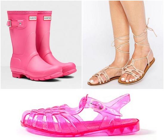 พูดเลยว่าสิ่งที่ควรใส่ใจอย่างยิ่งในช่วงฤดูฝนก็คงเป็นรองเท้านี่แหละค่ะ เพราะต้องเลือกแบบที่เดินสะดวกและวัสดุที่ทำรองเท้าควรทนน้ำทนฝนได้เป็นอย่างดี คือแบบโดนน้ำแล้วไม่พังไม่เยินนั่นแหละค่ะ โดยอาจจะเป็นรองเท้าแตะที่มีลูกเล่นด้วยการพันข้อ หรือรองเท้าแตะยางเก๋ ๆ มีสีสันมีกากเพชรที่กำลังฮอตจากแฟชั่นยุค 90 หรือหากอยากกันฝนจริง ๆ ไปเลย ก็เลือกรองเท้าบูทยางสีสันสดใสมาใส่ก็ยังแจ่มอยู่นะคะ