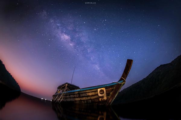 เรือหางยาวอุทยานกับทางช้างเผือกฝั่งตะวันออกเฉียงใต้ของเกาะ