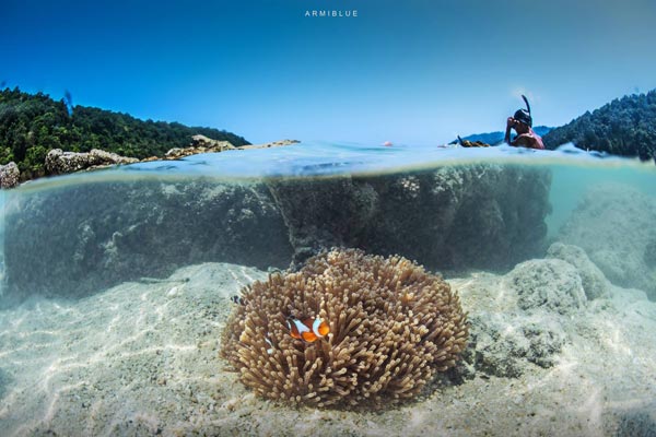 ปลาการ์ตูนกับดอกไม้ทะเลในช่วงน้ำลง ใกล้ชายหาดที่หาชมได้ไม่ยาก