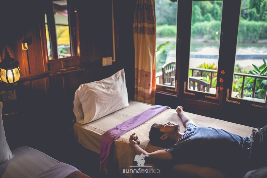ที่พัก River view Bungalows ติดริมแม่น้ำซอง นอนได้ 3 คน ส่วนราคาอยู่ที่ 900-1500 แล้วแต่วัน