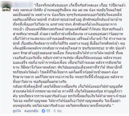หลังจากเกิดเรื่องเขาช็อคมาก ไม่สามารถโฟกัสเรื่องเรียนได้ จากที่หวังจะสอบเข้าโรงเรียนดังก็เลยหมดสิทธิ์ไป หลังจากนั้นไม่นาน ระหว่างเขาเดินทางไปต่างจังหวัด เขาก็ได้ช่วยคุณยายคนนึงไว้ แกมีเซนส์พิเศษ ก็เลยช่วยดูดวงให้ แกดูมือ แล้วก็ถามอะไรนิดหน่อย แกว่าเขามีเรื่องในใจ แล้วก็บอกว่าเวลาเห็นเงินตกตามข้างถนน อย่าเก็บเด็ดขาด มันเป็นเงินผี ผีแกล้งเอามาวางไว้ เพื่อหาคนโลภมาตายแล้วเฝ้าที่ตรงนั้นแทนตัวเอง ส่วนตัวผีก็จะได้ไปผุดไปเกิด บางทีเงินนั้นเป็นความซวยที่ทำให้เจ้าของเสียทรัพย์ แล้วถ้าเราไปเก็นถือว่าเราเอาความซวยเค้ามาต่อ สักวันความซวยนั้นจะตกอยู่ที่เรา บางทีเราอาจจะเสียมากกว่าที่เราเก็บได้ก็ได้