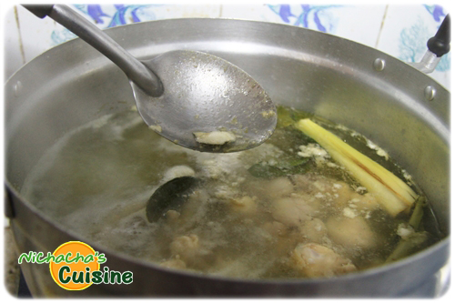 พอเดือดจะมีฟองลอยขึ้นมา ให้ช้อนออก