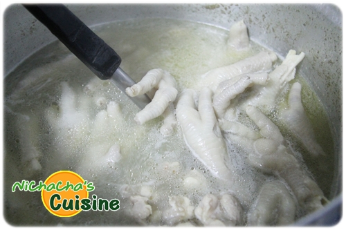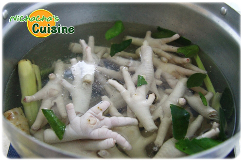 พอเดือดอีกครั้ง ใส่ขาไก่ลงไปต้ม