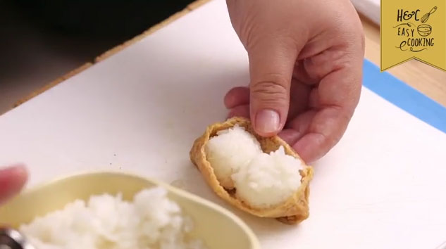 1. ใช้สกู๊ปไอศกรีมตักข้าว ปั้นให้กลมเตรียมไว้