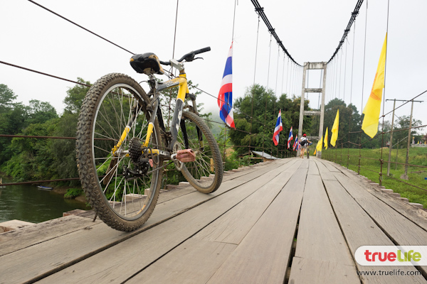 ระหว่างทางยังผ่านสะพานแขวนเล็กๆ ผ่านได้แค่จักรยาน