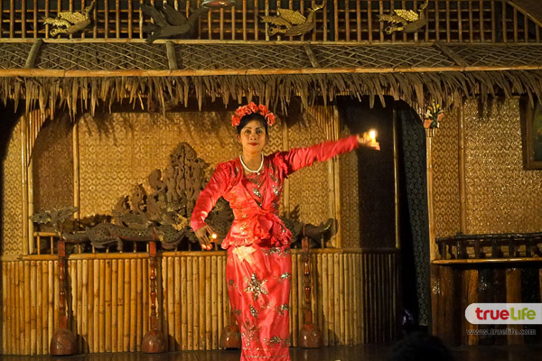 หลังมื้อค่ำที่รีสอร์ทยังมีกิจกรรมดีๆ ที่หาชมได้ยากก็คือ ระบำมอญ