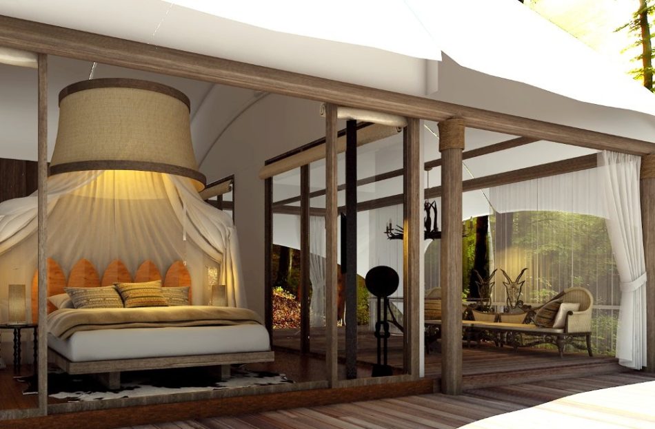 Tent Pool Villa วิลล่าสไตล์เต็นท์คนจรมีลักษณะเป็นเหมือนกระโจมที่สามารถโยกย้ายได้ง่าย เสมือนกับชีวิตของชนเผ่าคนจรที่มักจะอยู่ไม่เป็นหลักแหล่งและท่องเที่ยวไปเรื่อยๆ ห้องพักสไตล์เต็นท์คนจรจึงมีลักษณะเป็นเหมือนกระโจม ภายในวิลล่าตกแต่งอย่างสวยงาม สะดวกสบาย และยังให้ความรู้สึกเหมือนได้ผจญภัยอีกด้วย