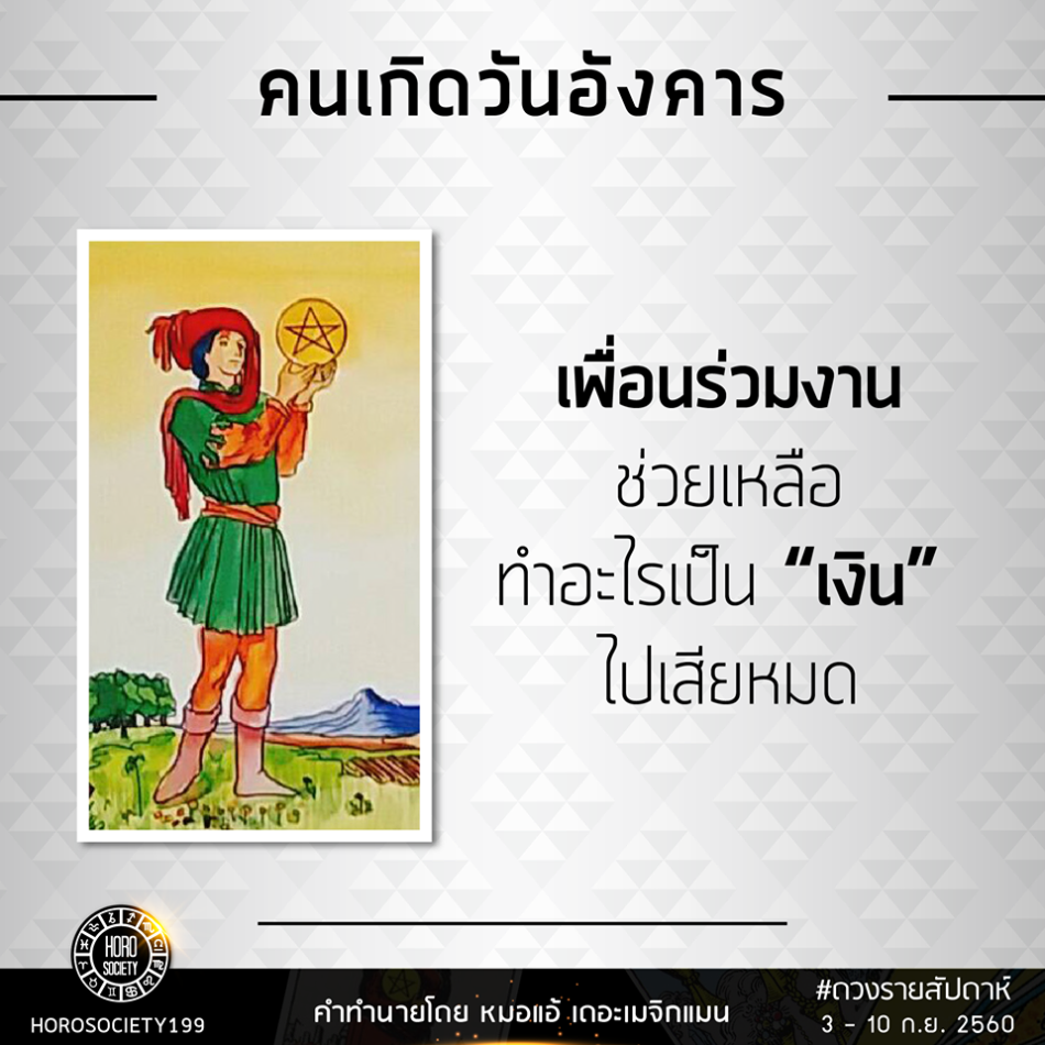 คนวันอังคาร ได้ไพ่เด็กถือเหรียญ