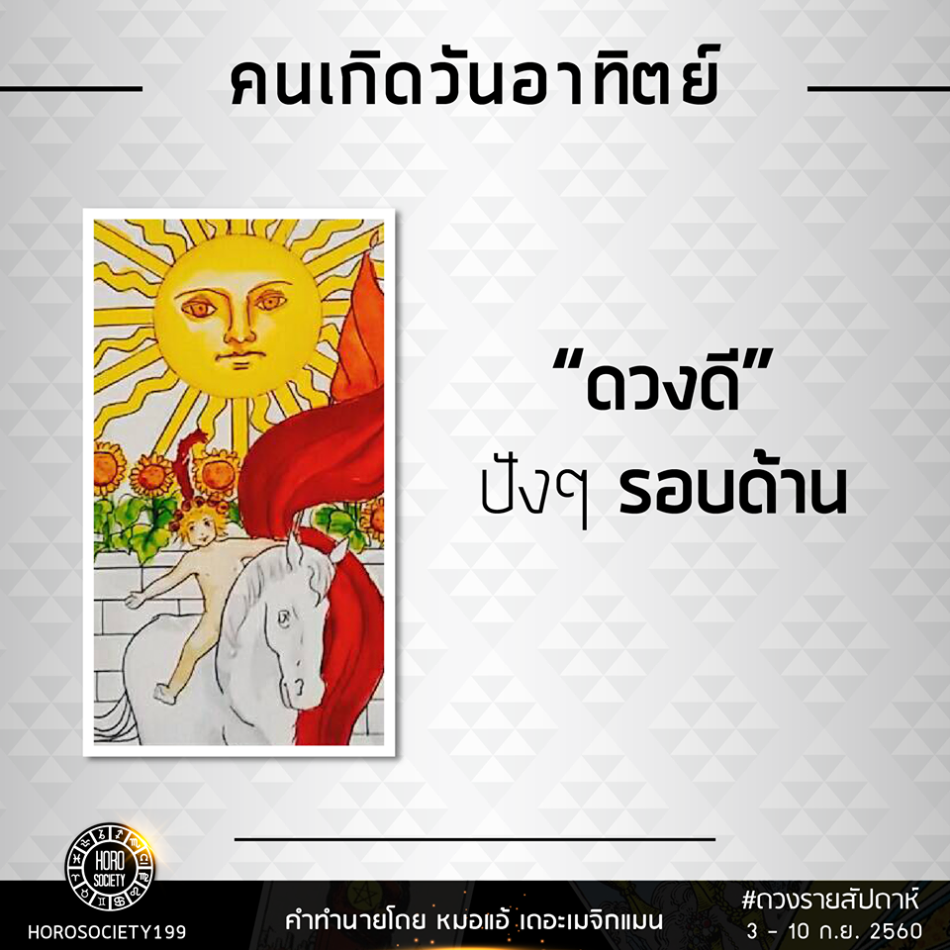มาแล้วจ้า!! สำหรับใครที่กำลังรออ่านดวงรายสัปดาห์อยู่ วันนี้ MarketJJ นำมาฝากเพื่อนๆกันแล้ว โดยในอาทิตย์นี้ หมอแอ้ เดอะเมจิกแมน ได้เผยแพร่คำทำนายดวงวันเกิด ประจำวันที่ 4-10 กันยายน 2560 ผ่านทาง เฟซบุ้คแฟนเพจ Horosociety199 ซึ่งมีทั้งคนดวงรุ่ง ชีวิตดี มีเงินใช้จ่ายสบาย และคนดวงร่วง ทำอะไรก็ติดๆขัดๆ กระเป๋าแบนทั้งอาทิตย์ ว่าแล้วก็ไปดูกันดีว่า…ว่าจะตรงกับใครบ้าง ไปเช็คพร้อมกันเลยจ้า!