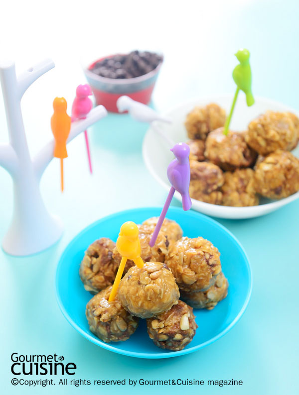 เมนูช็อกโกแลตบอล หรือช็อกบอล สูตรเบเกอรี่แสนอร่อยที่คุ้นลิ้นของใครหลายคน โดยเฉพาะคุณหนู ด้วยมีเนื้อช็อกโกแลตของชอบของเด็ก ๆ ปั้นเป็นก้อนกลมชิ้นพอดีคำ แต่สำหรับคุณแม่ที่ต้องการเพิ่มความแปลกใหม่ เราขอนำเสนอวิธีทำเนยถั่วช็อกโกแลตบอล (Peanut Butter Chocolate Ball) สูตรจากนิตยสาร Gourmet & Cuisine สูตรนี้ใส่ข้าวโอ๊ตผสมผสานกับเนยถั่ว เม็ดมะม่วงหิมพานต์ เมล็ดทานตะวัน และถั่วลิสง เพิ่มช็อกโกแลตชิพลงไป ปั้นเป็นก้อนกลมเสร็จแล้วก็นำไปแช่จนเย็น ง่ายใช่ไหมล่ะ ไหน ๆ ก็ปิดเทอมแล้วชวนคุณลูกเข้าครัวกันเลย
