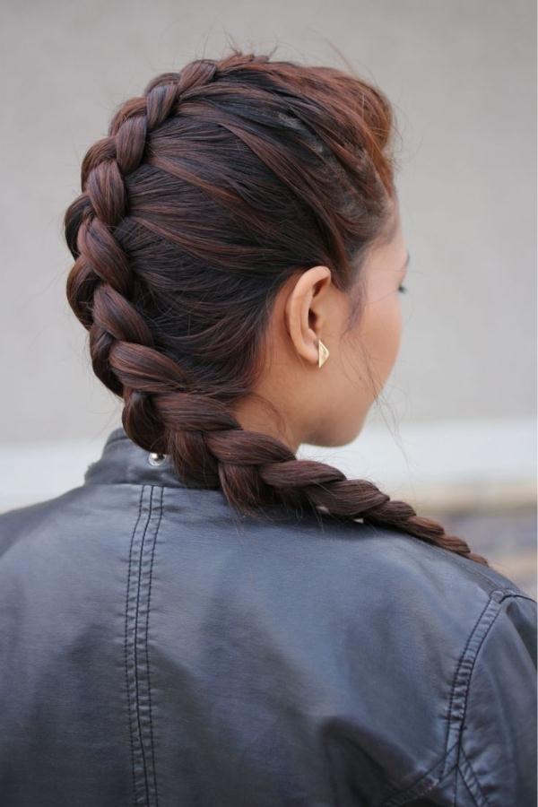 1. ถักเปียแล้วรวบไปเป็นมวย