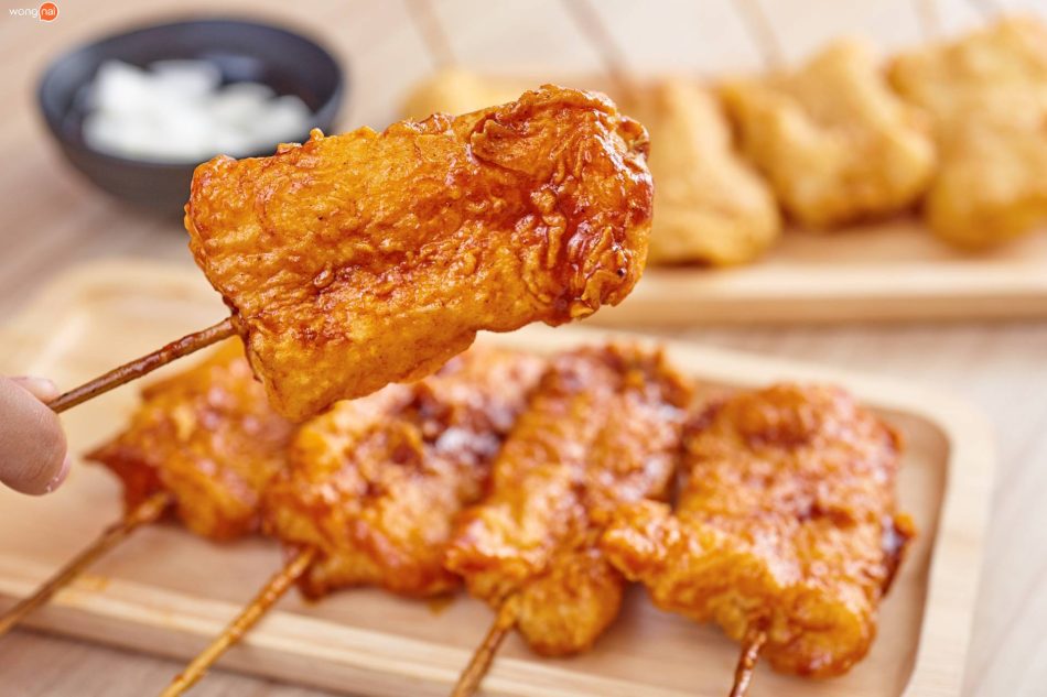 เสิร์ฟแบบเสียบไม้หยิบทานได้สะดวก โดยทางร้านจะใช้เนื้อปลาสด