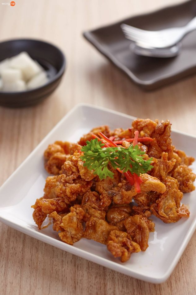 มาเริ่มกันเลยดีกว่า เมนูแรกเป็นของทานเล่นที่ใครๆ ก็ต้องชอบ ?Fried Cartilage Spicy Numnum Sauce เอ็นข้อไก่ทอดซอสนัมนัมสไปซี่?