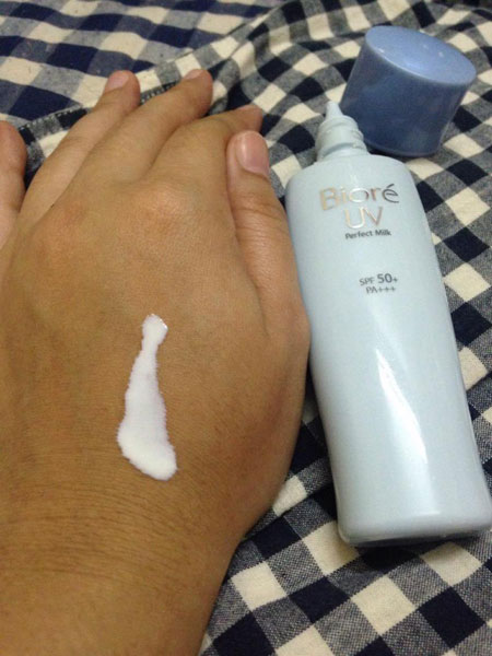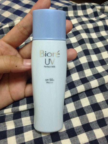 ตัวแรกนะเป็นกันแดดเนื้อนม ขวดสีฟ้านี้เลย “Biore UV Perfect Milk SPF50/PA+++ (บิโอเร ยูวี เพอร์เฟค มิลค์ SPF50/PA+++)” จะขอกว่าจริงๆแล้วตัวน้ใช้มานานมาก 4 – 5 ปีแล้วนะ เค้าออกมาใหม่ๆ ก็ลองใช้เลย เพราะว่าเป็นเนื้อน่ำนมไง เลยคิดว่ามันต้อดีมากแน่ๆ