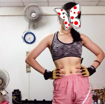 รูปขวานี่ปัจจุบันสุดค่ะ ถ่ายตอนเช้าหน้าท้องแบน ๆ แต่ก็มีร่อง Six Pack จางเหลือเกิน เศร้าใจจัง TT^TT