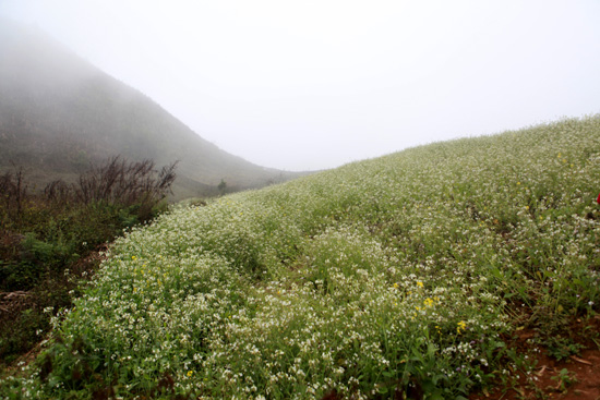 ทุ่งดอกไม้ผลิสีขาวดอกเล็กๆ ที่ หม็อกเจิว เวียดนาม