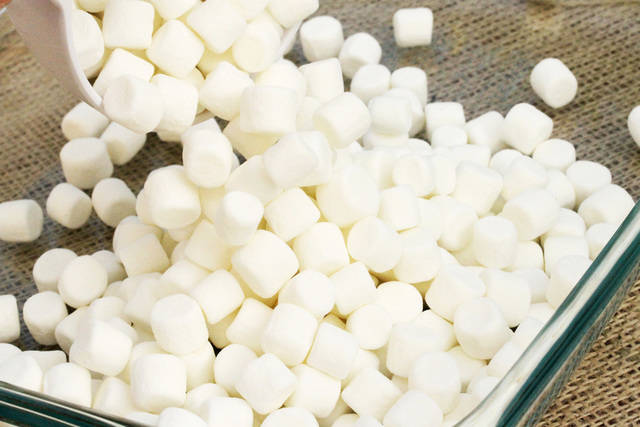 3. ตักมาชเมลโลว์ใส่ลงในชามแก้วที่สามารถเข้าไมโครเวฟได้