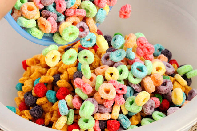 2. ซีเรียลยี่ห้อฟรู๊ตลูป (Froot Loops Cereal) 3 ถ้วย