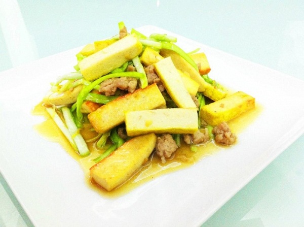 ผัดกุยช่ายขาวเต้าหู้หมูสับ เครื่องเคียงข้าวต้มสูตรเด็ด
