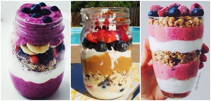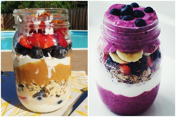 ธัญพืช หรือถั่วที่คุณชื่นชอบลงในแก้วใสๆ แล้วคั่นด้วยน้ำผลไม้ปั่นที่ชอบ