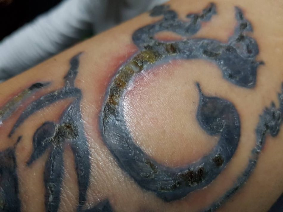ผมก็ไม่รุ้ว่า ตอนสัก ใช้หมึก อะไร อุปกรณ์การสักสะอาดมั้ย เข็มที่ใช้สัก ใช่เข็มใหม่รึป่าว ตอนสัก สักแบบ รุนแรง แค่ใหน จึงทำให้เกิดการอักเสพขั้นรุนแรงใด้ขนาดนี้ผมจับเครื้องสักมา8ปี ยังไม่เคยเห็น แผลที่น่ากลัวขนาดนี้มาก่อนเลย บอกตรง?แนะนำ น้ะครับ สำหรับคนที่อยากสัก ไม่ว่าจะสักลายเล็กๆน้อยๆ แค่ใหน ควรน้ะครับ(ควรอย่างยิ่ง)ควรศึกษา ตัวตนช่างสักให้ดีก่อน ควรดูผลงานของช่างคนนั้นที่เค้าทำเองกับมือหลายๆผลงาน(ทำเองกะมือน้ะครับ เพราะบางร้านจะมีลุกน้องหัดสักมาฝึกงาน)เช็คว่าอุปกร สะอาดมั้ย มีถุงพาสติกหรือแลป พันอุปกรไว้มั้ยเข็มเปลียนใหม่ทุกครั้งมั้ย(ผมเคยใด้ยินมา มีร้านสักบางร้าน สักเสร้จ แล้วเก็บเข็มไปล้าง และนำมาใส่ซองไว้เหมือนเดิม เหมือนยังไม่ใด้ใช้งานมาก่อน และนำมาสักให้ลุกค้าต่อ) ควรดูดีๆครับ ตอนช่างสัก เปรียนเข็ม