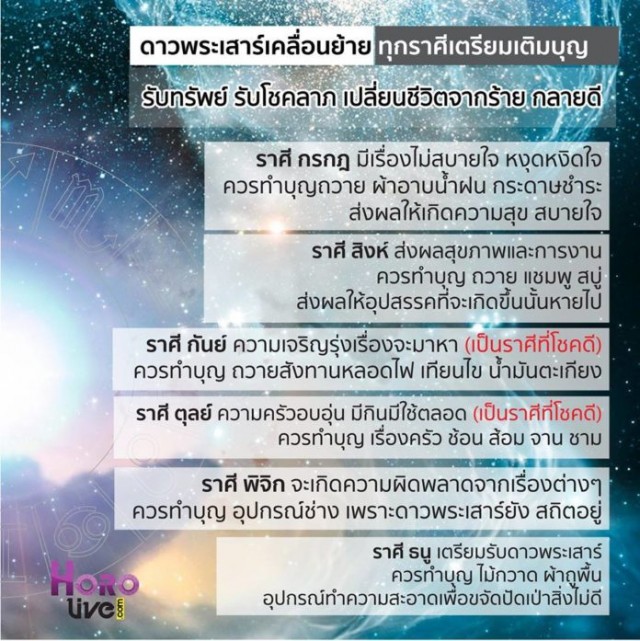 จากอิทธิพลการเคลื่อนย้ายของดาวเสาร์ในวันที่ 10 ก.ย. ที่ผ่านมา ส่งผลให้ดวงชะตาของ 12 ราศีเปลี่ยนแปลง โดยทางด้าน อ. คฑา ชินบัญชร หมอดูชื่อดัง ก็ได้เผยคำทำนายทั้ง 12 ราศี ซึ่งมีทั้งราศีที่ดวงดี เตรียมรับทรัพย์มหาศาล และราศีที่ดวงร่วง ควรเร่งทำบุญด่วน พร้อมทั้งแนะนำเคล็ดลับทำให้ดวงเฮง จากผลกระทบของการย้ายของดาวเสาร์! ว่าแล้วก็ไปเช็คกันดีกว่า…ว่าราศีใครจะดีหรือแย่ และควรแก้ไขอย่างไร ไปดูให้เห็นกับตากันเลยจ้า!