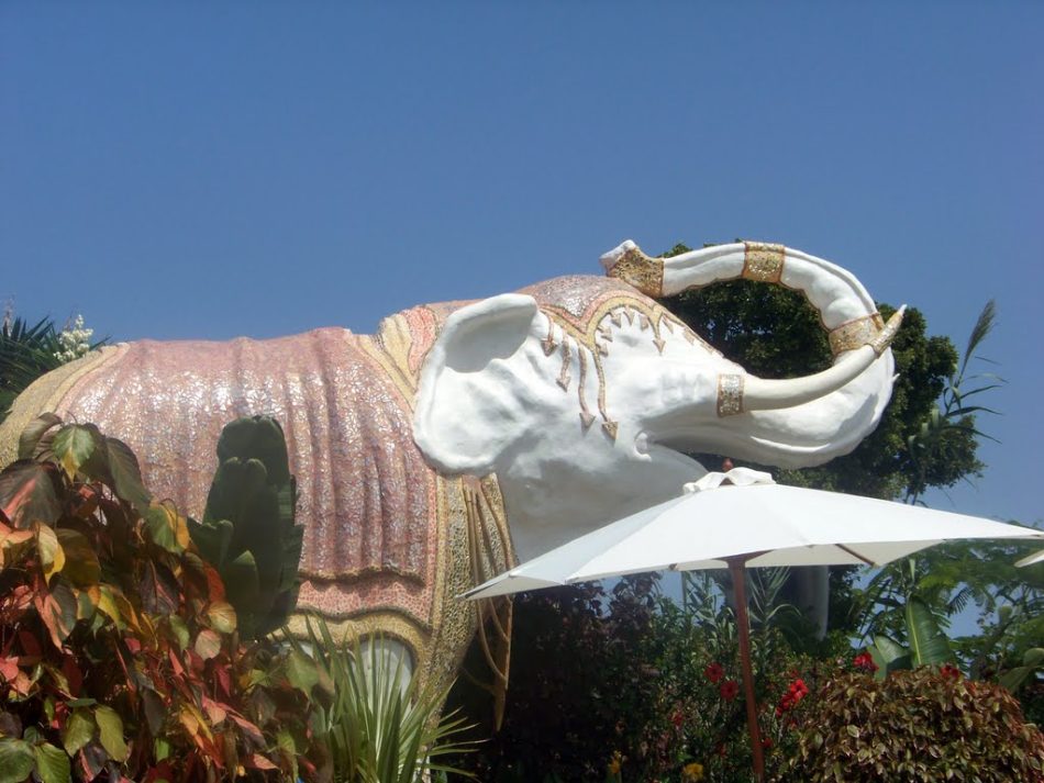 ความเป็นไทย อาทิ อาคารทรงไทย ยักษ์ รวมไปถึงช้างไทยก็ถูกนำไปตกแต่งด้วย