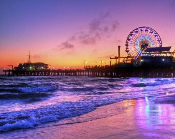 #11. Santa Monica Pier, Los Angeles – ท่าเรือซานตาโมนิกา (Santa Monica Pier) เป็นสถานที่ท่องเที่ยวที่โด่งดังของเมืองซานตา โมนิกา ทางตะวันตกของลอสแอนเจลิส รัฐแคลิฟอร์เนีย สหรัฐอเมริกา และถูกใช้เป็นสถานที่ถ่ายทำภาพยนตร์ฮอลลีวูดหลายเรื่องด้วยกัน ลองจินตนาการเวลาคุณนั่งเล่นบนชายหาดที่นี่ ดูคนเดินผ่านไปมา ทำกิจกรรมบนชายหาด ในขณะที่แสงอาทิตย์ยามเย็นตกกระทบผื่นน้ำและเกลียวคลื่น มันช่างสวยงามจริงๆ