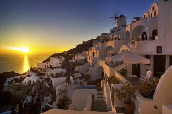 #1. Santorini, Greece – ซันโดรีนี หรือ ธีรา เป็นเมืองเล็กๆบนเกาะตอนใต้ของทะเลอีเจียน ประเทศกรีซ มีความสวยงามจัดเป็นแหล่งท่องเที่ยวแห่งหนึ่ง ได้รับการโหวตจากนักท่องเที่ยว
