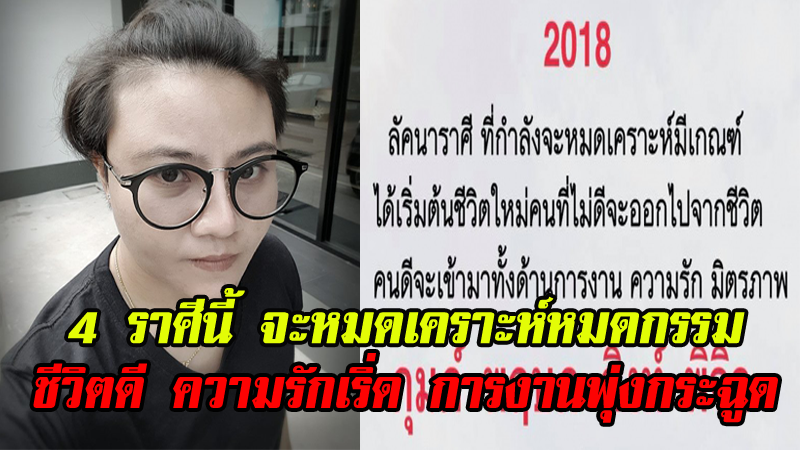วันนี้ MarketJJ มีคำทำนายแม่นๆมาฝากกันเช่นเคย โดย หมอเค้ก Magic designs หมอดูชื่อดังในโลกออนไลน์ ได้เปิดดวงชะตา 4 ราศี ในปี พ.ศ. 2561 ว่า ชีวิตจะดีขึ้น คนที่ไม่ดีจะออกจากไปจากชีวิต คนดีจะเข้ามาทั้งด้านการงาน ความรัก และมิตรภาพ ใครที่ทำให้เราเสียใจ ใครที่หักหลังเราไม่ว่าด้านใด ผลนั้นจะออกมาชัดเจนช่วงเดือนมกราคม พ.ศ. 2561 เป็นต้นไป ส่วนใครที่เราคิดว่าดี สุดท้ายเขาจะถอดหน้ากาก เราจะเห็นมุมเลวๆ จนเรารู้สึกว่าควรถอยออกมา จากนั้นชีวิตจะเริ่มดีขึ้น และมีความสุขมากขึ้น ซึ่งได้ราศีดังต่อไปนี้!