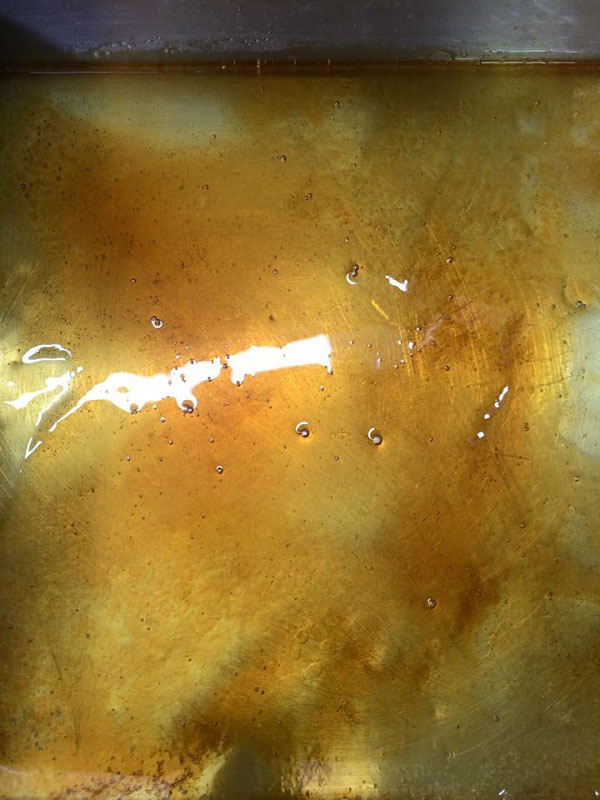 1. ใส่น้ำตาลทรายกับน้ำเปล่าลงในพิมพ์ทำเค้ก สวมถุงมือแล้วจับพิมพ์ไปอังกับเตาไฟฟ้า หมุนพิมพ์ไปมาจนน้ำตาลไหม้เป็นคาราเมล