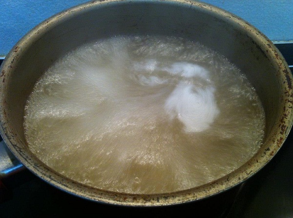 ตั้งน้ำซุปกระดูกหมู หรือซุปไก่จนเดือด
