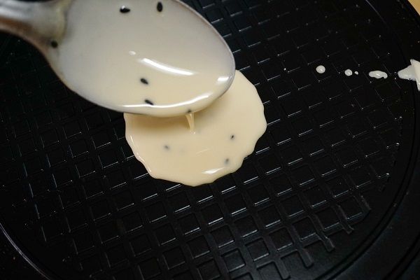 8. ตักแป้งหยอดแค่ 1 ช้อนกินข้าว รอประมาณ 1 นาที