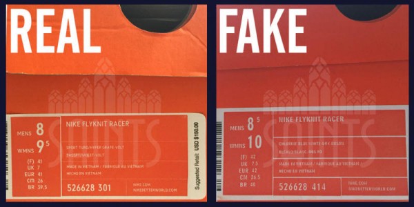 เลข SKU ของรองเท้า Nike ของแท้นั้นจะตรงกับเลขบนกล่องเสมอ นอกจากนี้สาวๆต้องตรวจสอบปีที่ผลิตของรองเท้ารุ่นนั้นๆด้วย ว่าผลิตในปีตรงกับปีที่วางจำหน่ายรึเปล่า บางครั้งรองเท้าของปลอมก็เขียนไว้ว่าผลิตในปี 2005 ทั้งๆที่จริงๆแล้วรองเท้าออกมาในปี 2010 นั่นเอง