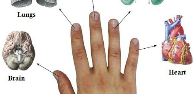 ด้านล่างนี้จะแสดงให้เห็นถึงการเชื่อมต่อทั้งหมดระหว่างนิ้วมือและอวัยวะของร่างกาย: