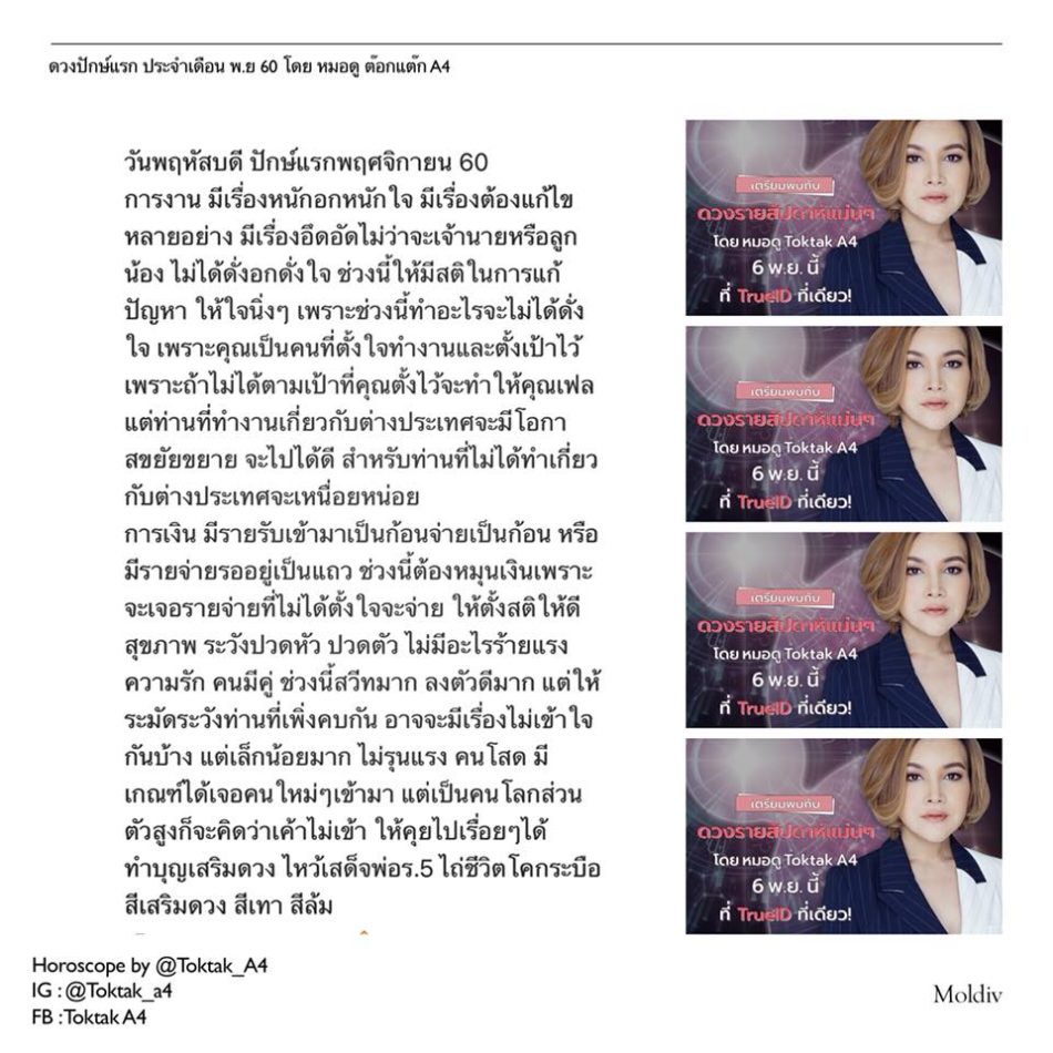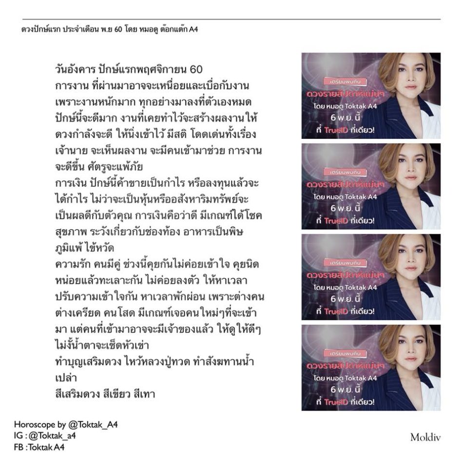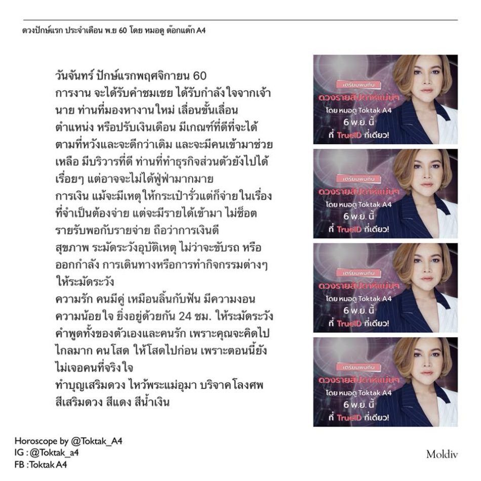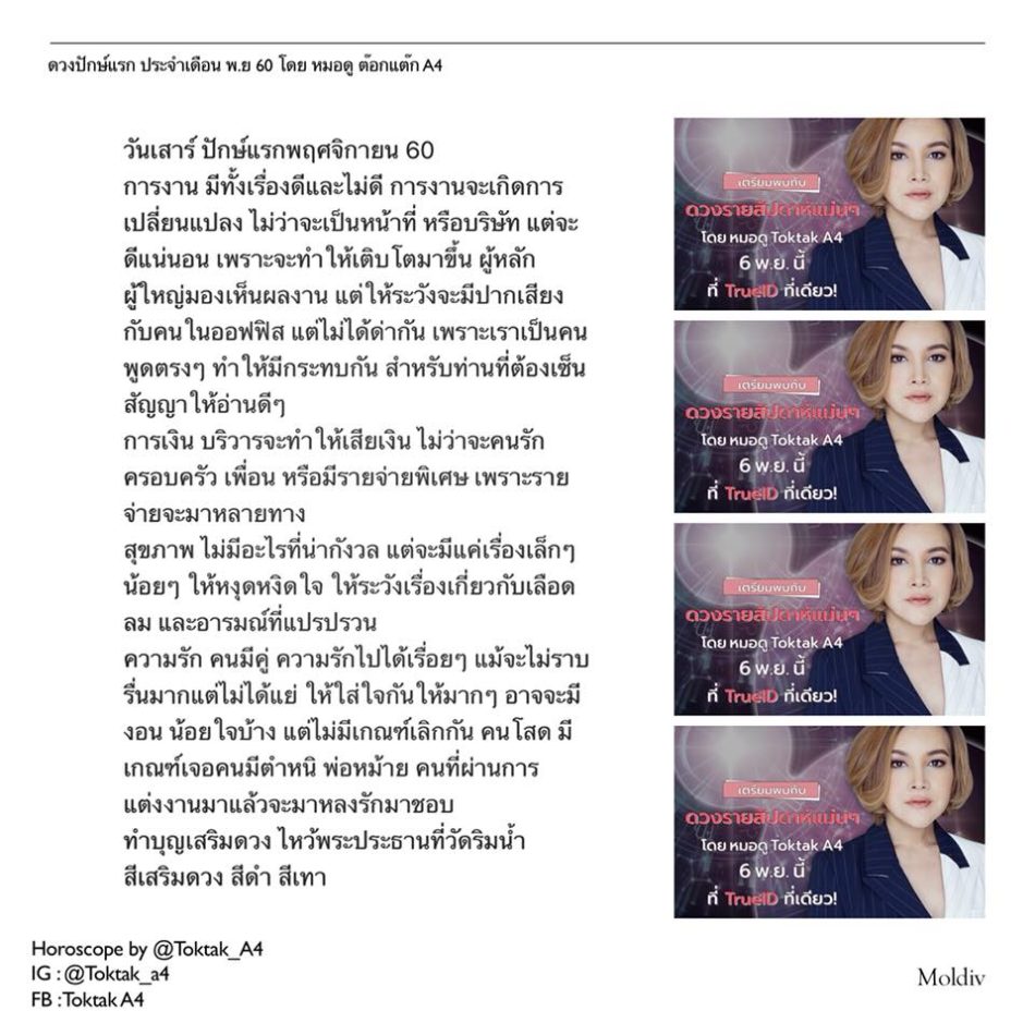 ตรงมาก!! เช็คดวงปักษ์แรก 1-15 พ.ย.60 โดย “หมอดูต๊อกแต๊ก A4”